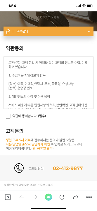 로젠택배 고객상담실 전화번호 : 02-412-9877
